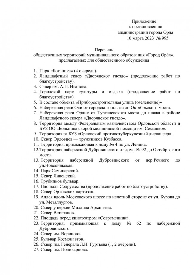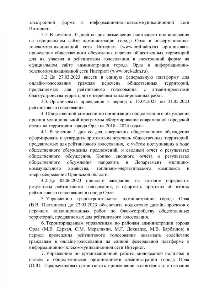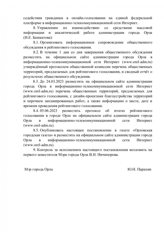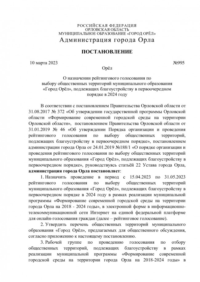О назначении рейтингового голосования по выбору общественных территорий муниципального образования "Город Орёл", подлежащих благоустройству в первоочередном порядке в 2024 году.