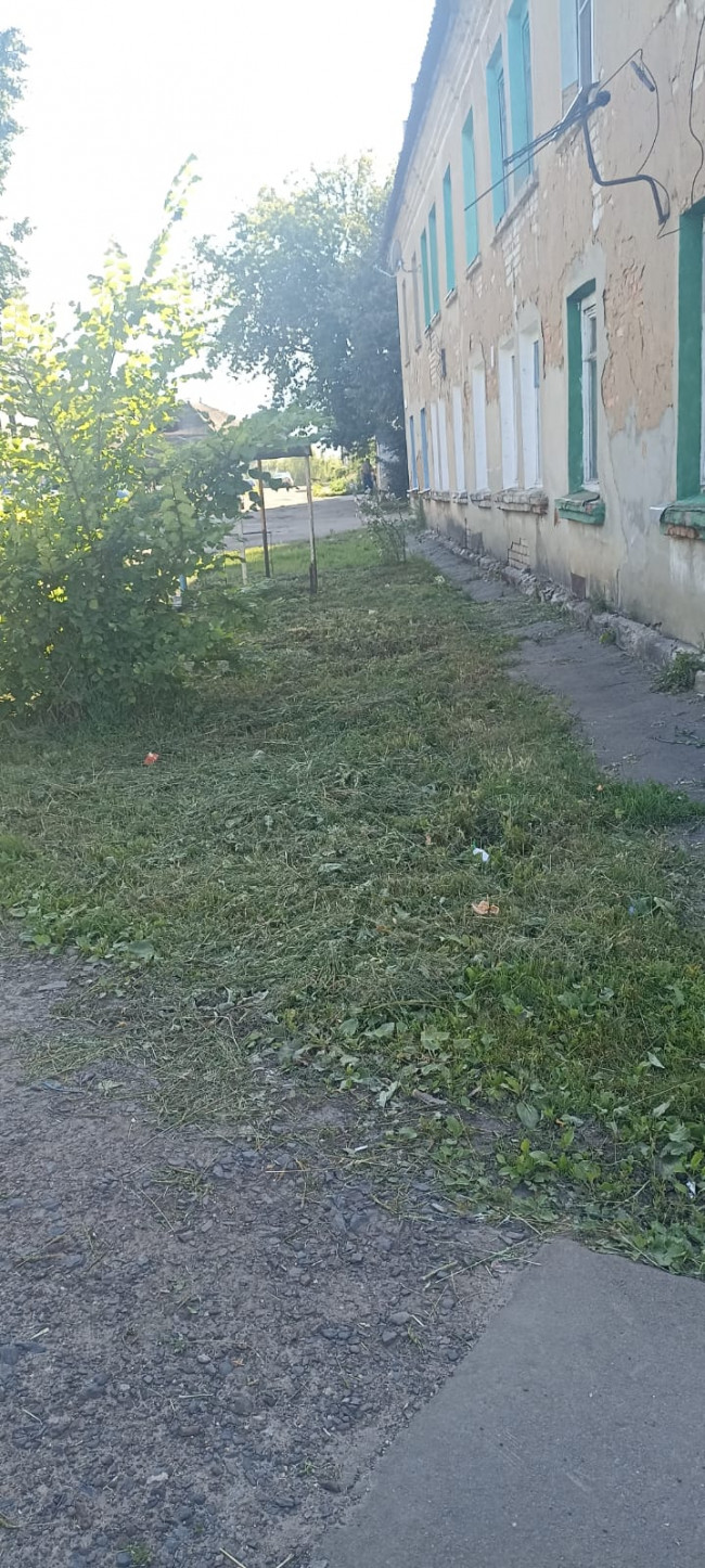 Покос травы на придомовой территории домов № 2 и 4, по ул. Моховская.