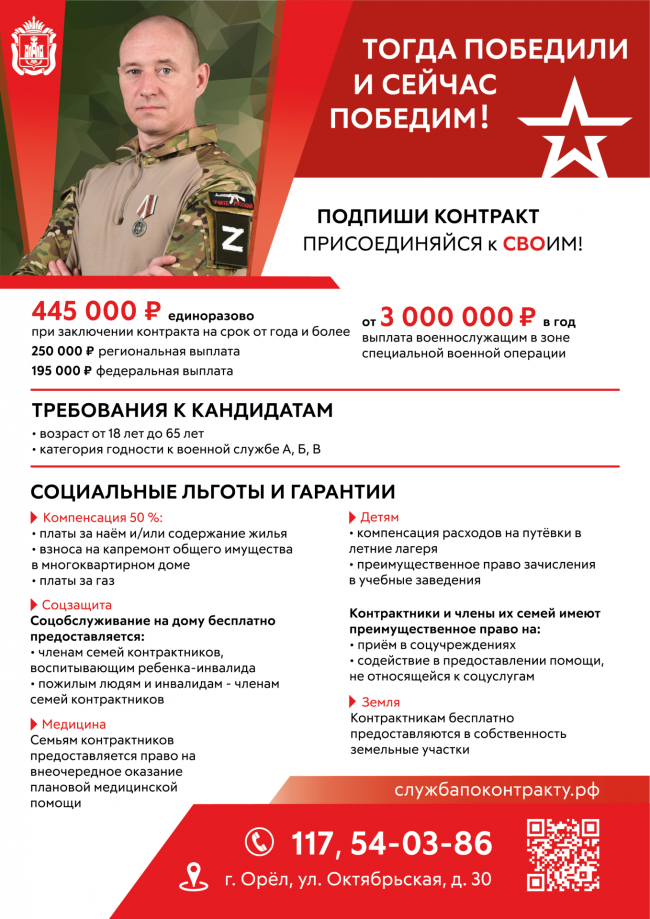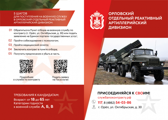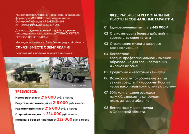 Информационно-агитационные материалы об условиях прохождения военной службы по контракту.